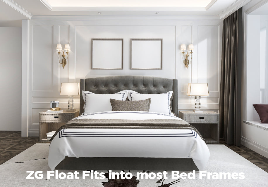 Don't be fooled by ZG Float's Sleek profile, It may look thin but has 12 inches of deep contouring gel. the ZG float has a modern or contemporary look when used with only a duvet bed cover, or add full length bedspreads to personalize your room. You can drop the bed into convectional wood frames as well.