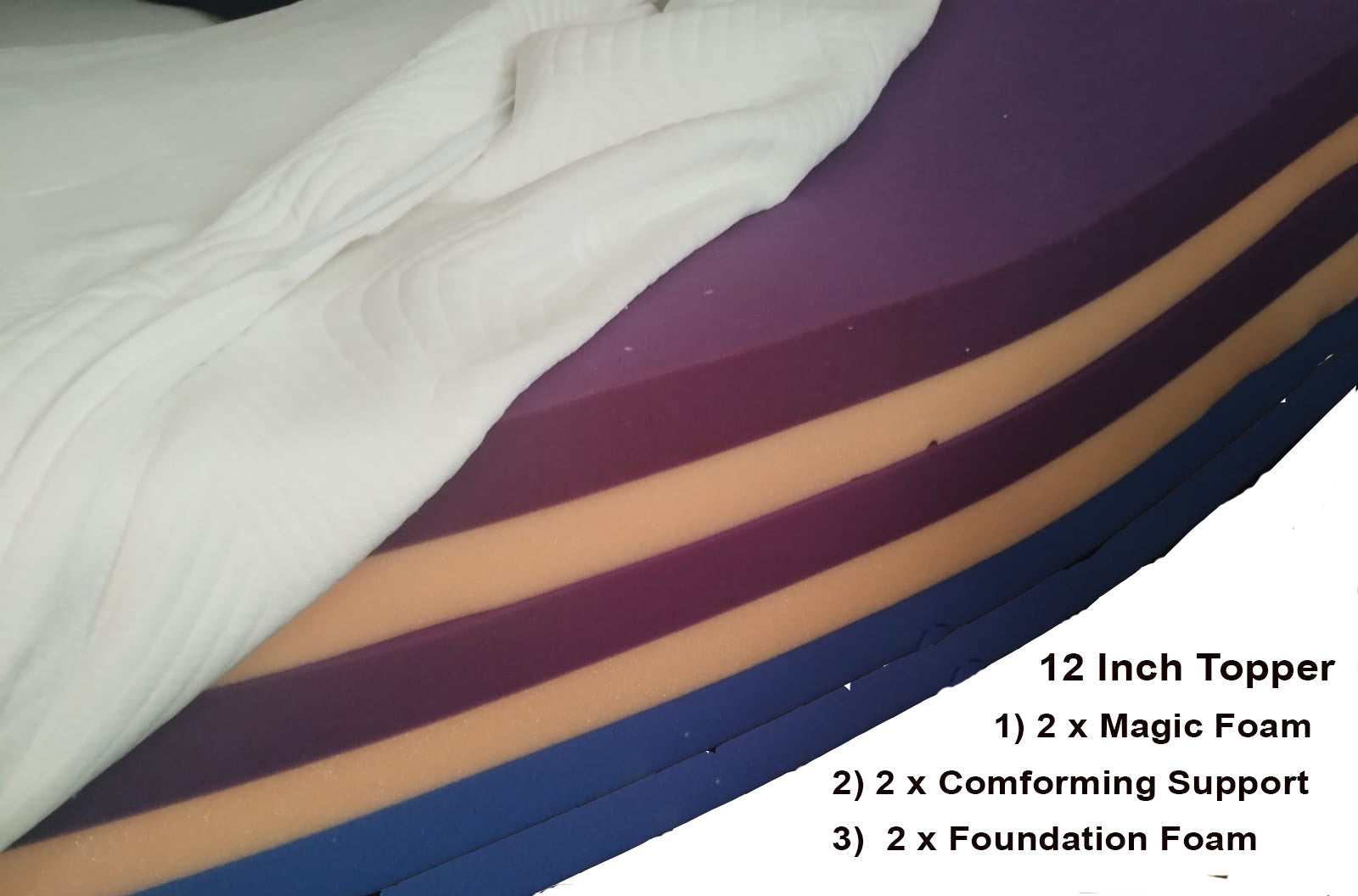 - Topper 1 - Magic Foam Molding Balanced Support Layer- Our innovative material is designed to conform and support the whole body for all night long comfort. 2 inches